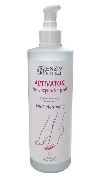 - Змішати Enzymatic peel foot cleansing з Activator for foot cleansing у співвідношенні 1:3. По мірі змішування має утворитися мус. Отриману суміш нанести на шкіру стоп, у тому числі на тріщини та на шкіру між пальцями. Після цього обернути плівкою на 15-20 хвилин. Залишки ретельно змити водою.