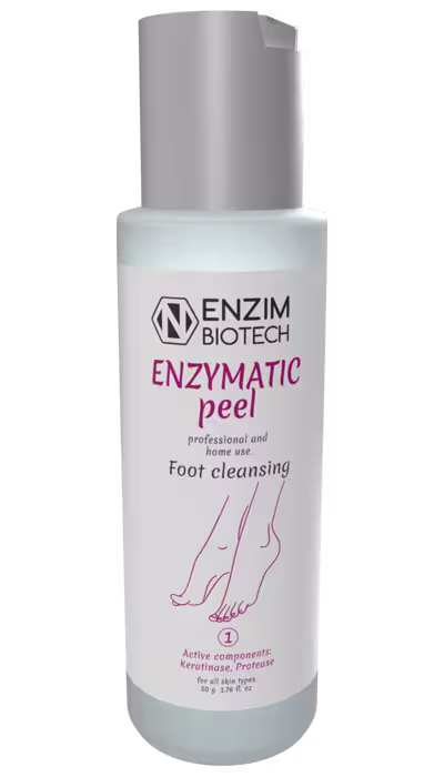 Ферментний пілінг для ніг інтенсивно розчиняє потовщений епідерміс без ефекту лущення шкіри. Ферменти Протеаза та Кератиназа відлущують ороговілі клітини епідермісу, розчиняючи їх і розгладжуючи його структуру. Шкіра ніг ретельно очищається, стає м'якою та гладкою на довгий час. Сприяє прискоренню та нормалізації процесу оновлення епідермісу.